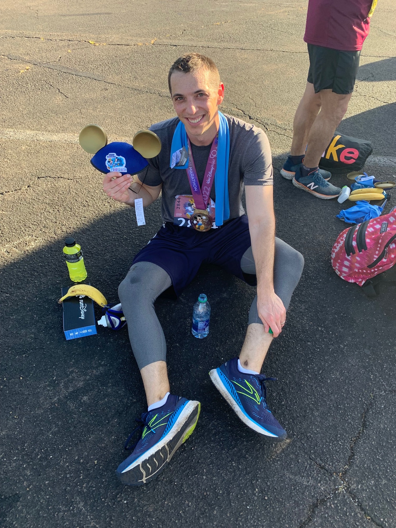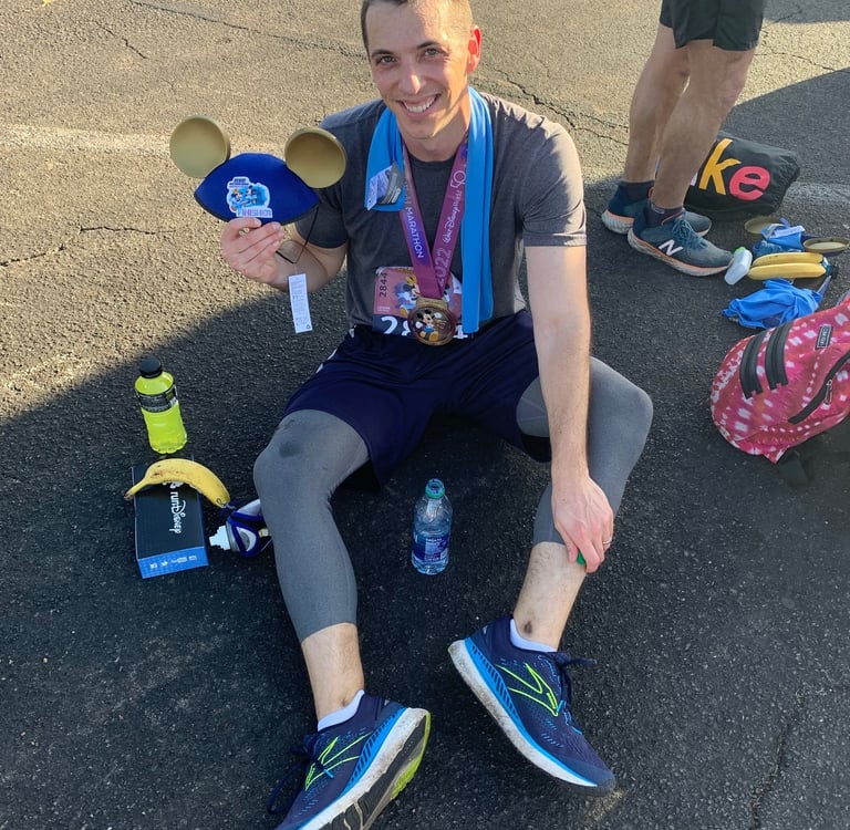 As I crossed the finish line at the 2022 Walt Disney World Marathon, a culmination of several months of training and anticipation for my first in-person marathon, it wasn’t joy, pride, or exuberance that I felt. It was relief. It was over. Everything hurt and I was not okay. I shuffled through the long path picking up a water, a Powerade, my medal (which was very cool, but somewhat lost on me at the moment), my marathon Mickey ears, a food box, and a “victory” banana. Hoping for somewhere to set everything down for a few minutes to collect myself, I settled for the worst option: sitting on the ground. Dehydrated and in agony, I couldn’t figure out if drinking fluids made me feel better or worse. My wife found me on the ground in a sad, sweaty heap and she exclaimed “You did it!” All I could reply with was the only thought repeating in my mind, “Why does anyone do this more than once?”